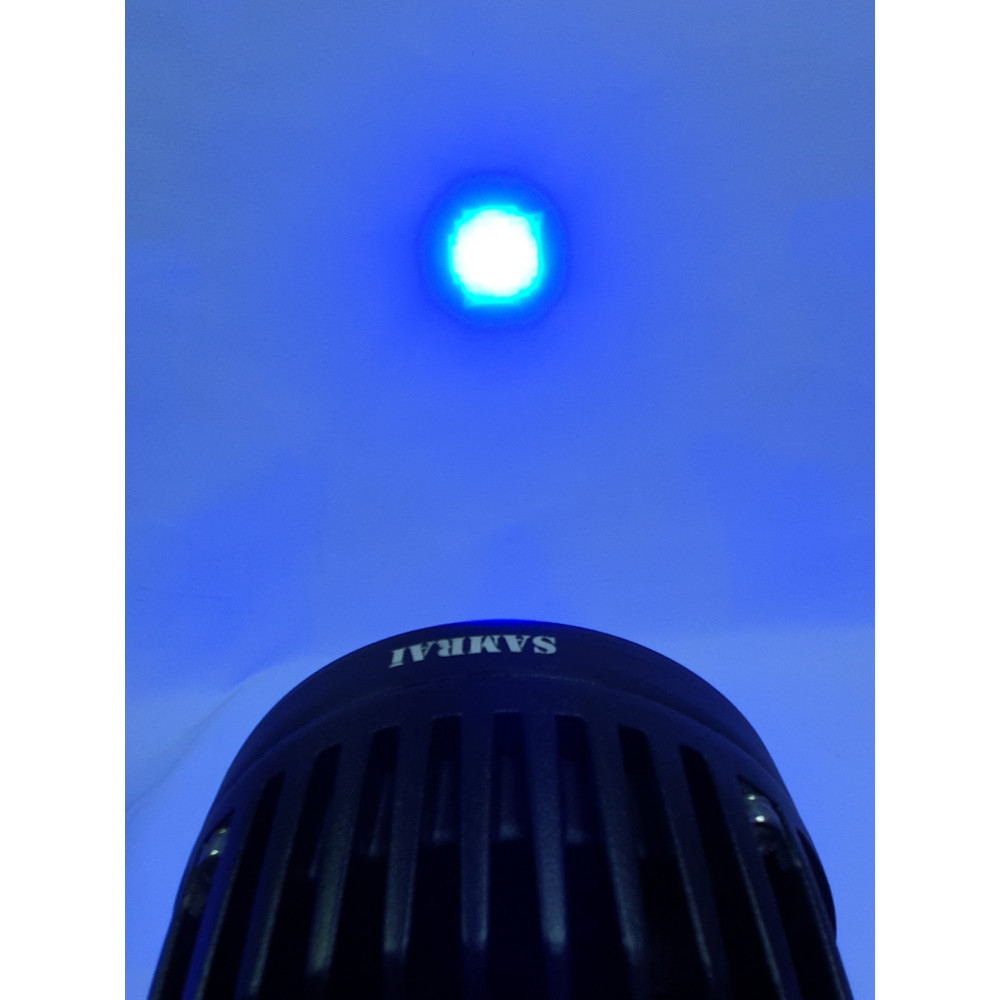 Светодиодная фара 45Вт с синим лучом. Данная фара имеет пыле-влагозащиту IP68 и способна работать при напряжении питания 10 ~ 36V в широком температурном диапазоне (-45C ~ +60C). Используется для подсветки поливочных форсунок на сельскохозяйственной техники в тёмное время суток.