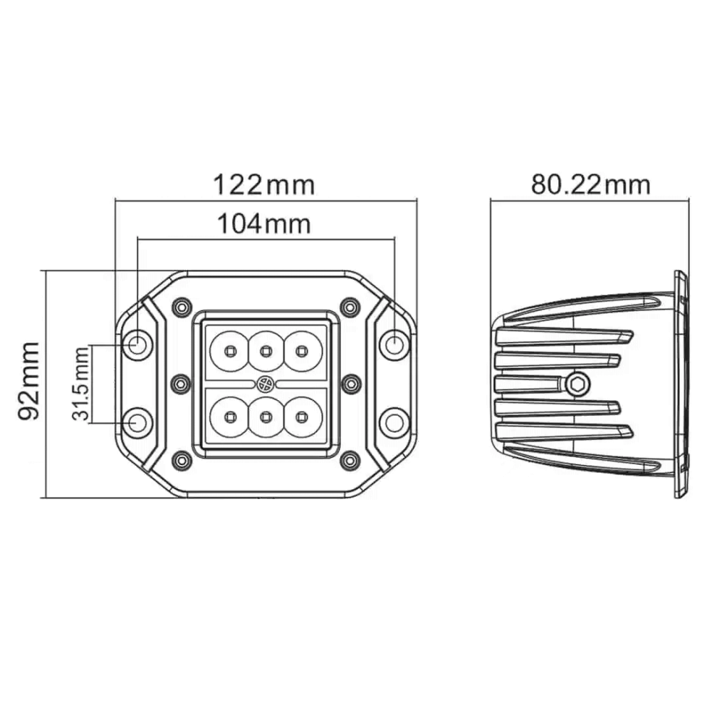 | Тип фарыФара рабочего света врезная | Форма фарыКвадратная врезная | Форма лучаSpot (узкий луч) |