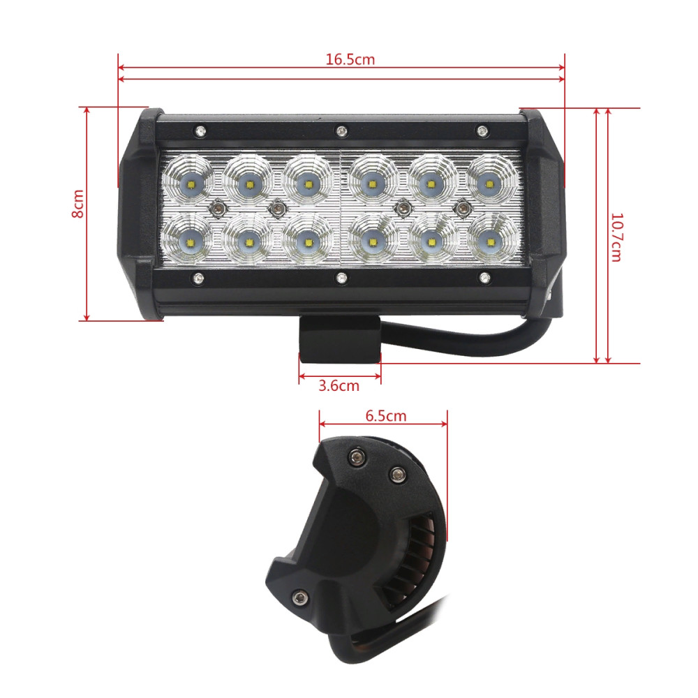 Двухрядная светодиодная балка люстра с нижним креплением 36 Вт с широким лучом свечения (Flood) со светодиодами Cree в ударопрочном литом алюминиевом корпусе и с ударопрочной линзой из поликарбоната с пылевлагозащитой IP67. Функционирует при температуре от -40 до +50 градусов. Основное предназначение данной светодиодной балки увеличение дальности и яркости светоосвещения и в качестве доп. света для большегрузных автомобилей, спец техники, катеров, лодок, яхт и для авто повышенной проходимости.