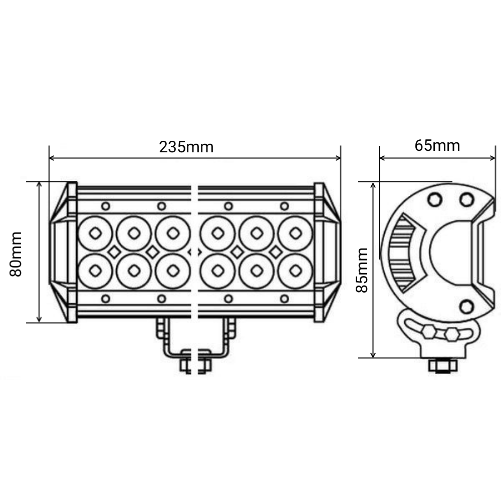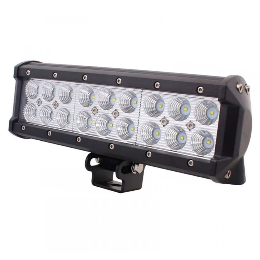 Двухрядная светодиодная балка люстра с нижним креплением 54 Вт с широким лучом свечения (Flood) со светодиодами Cree в ударопрочном литом алюминиевом корпусе и с ударопрочной линзой из поликарбоната с пылевлагозащитой IP67. Функционирует при температуре от -40 до +70 градусов. Основное предназначение данной светодиодной балки увеличение дальности и яркости светоосвещения и в качестве доп. света для большегрузных автомобилей, спец техники, катеров, лодок, яхт и для авто повышенной проходимости.
