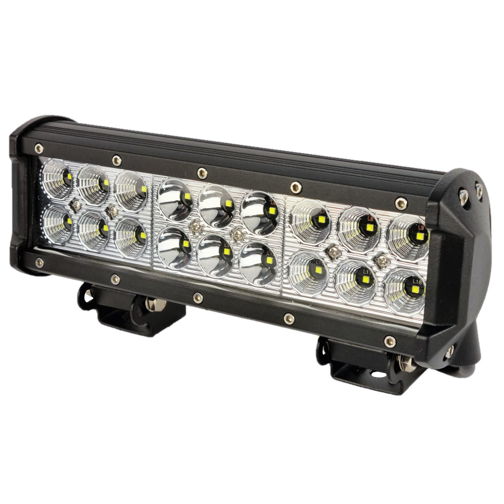 Двухрядная светодиодная балка люстра с нижним креплением 54 Вт с широким лучом свечения (Flood) со светодиодами Cree в ударопрочном литом алюминиевом корпусе и с ударопрочной линзой из поликарбоната с пылевлагозащитой IP67. Функционирует при температуре от -40 до +70 градусов. Основное предназначение данной светодиодной балки увеличение дальности и яркости светоосвещения и в качестве доп. света для большегрузных автомобилей, спец техники, катеров, лодок, яхт и для авто повышенной проходимости.
