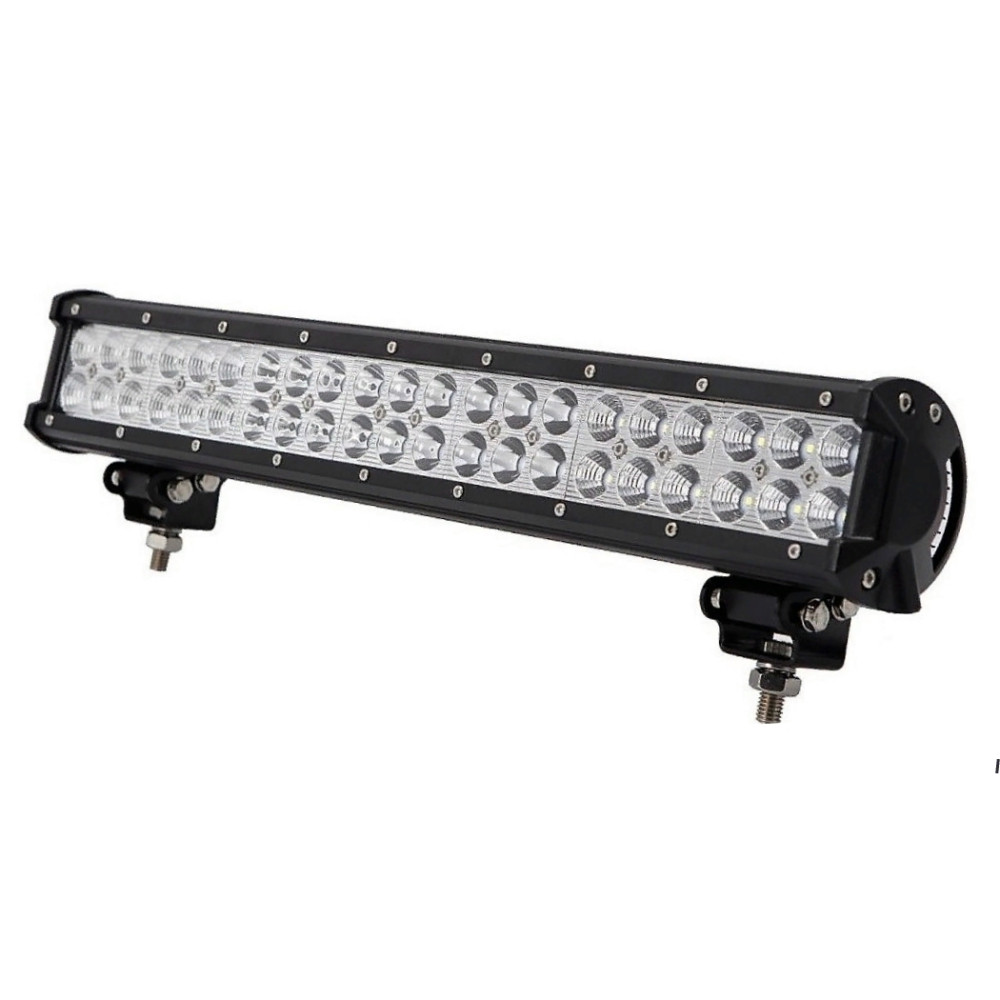Двухрядная светодиодная балка люстра с нижним креплением 126 Вт с комбинированным лучом свечения (Kombo) со светодиодами Cree в ударопрочном литом алюминиевом корпусе и с ударопрочной линзой из поликарбоната с пылевлагозащитой IP67. Функционирует при температуре от -40 до +50 градусов. Основное предназначение данной светодиодной балки увеличение дальности и яркости светоосвещения и в качестве доп. света для большегрузных автомобилей, спец техники, катеров, лодок, яхт и для авто повышенной проходимости.