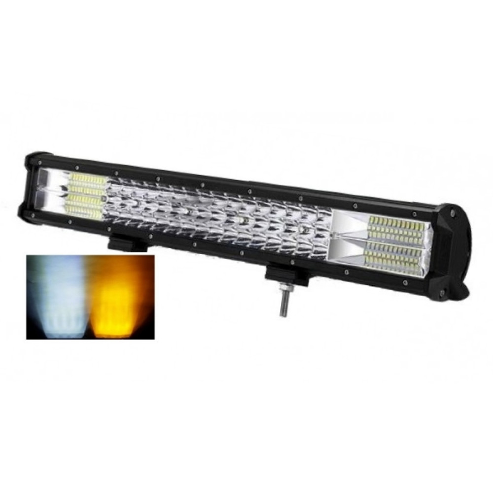 Яркая двухцветная (желтый-белый) светодиодная балка трехрядная, с нижним креплением 252 Вт с комбинированным лучом свечения (Combo) в ударопрочном литом алюминиевом корпусе и ударопрочной линзой из поликарбоната с пылевлагозащитой IP67. Функционирует при температуре от -40 до +50 градусов.
