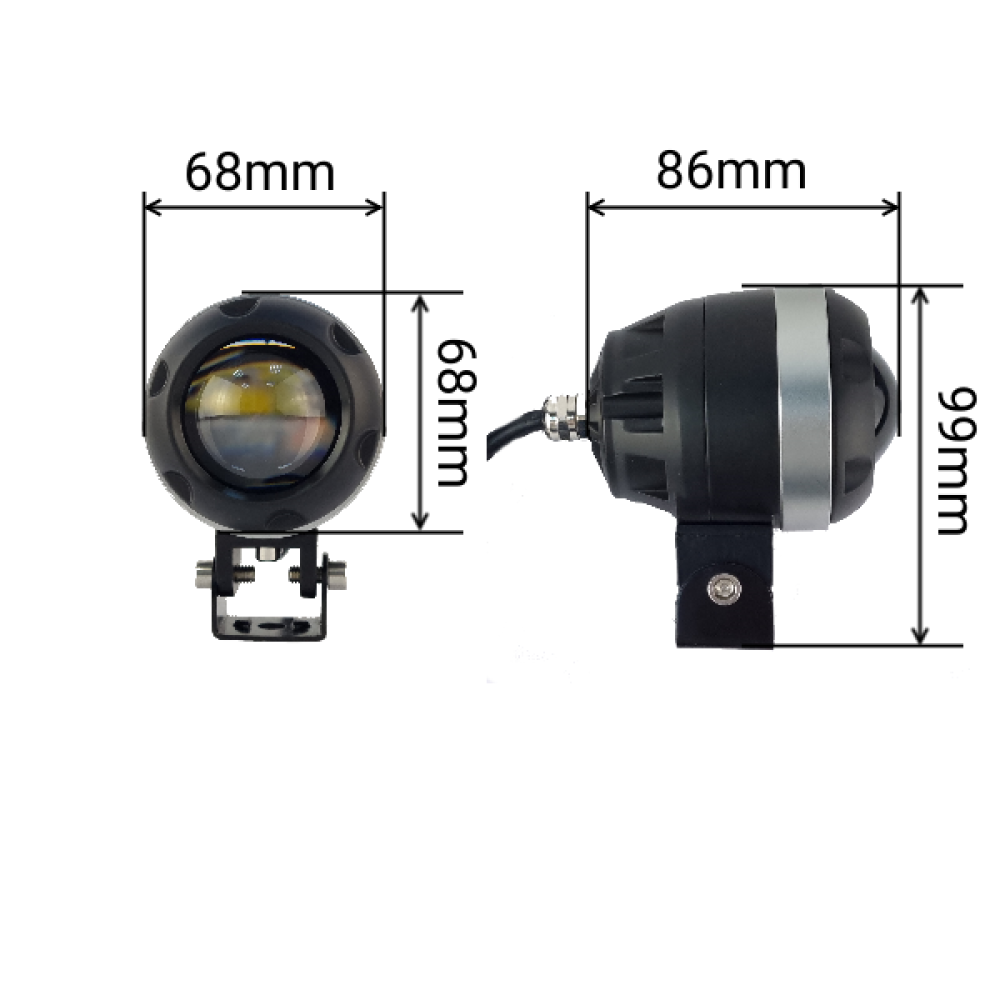 Фара имеет два типа свечения - белый и желтый, что позволяет выбирать оптимальный режим в зависимости от освещения. Корпус из металла обеспечивает надежность и долговечность. Фара подходит для использования на любых транспортных средствах, таких как мотоциклы, прицепы и тракторы, а также на автомобилях.