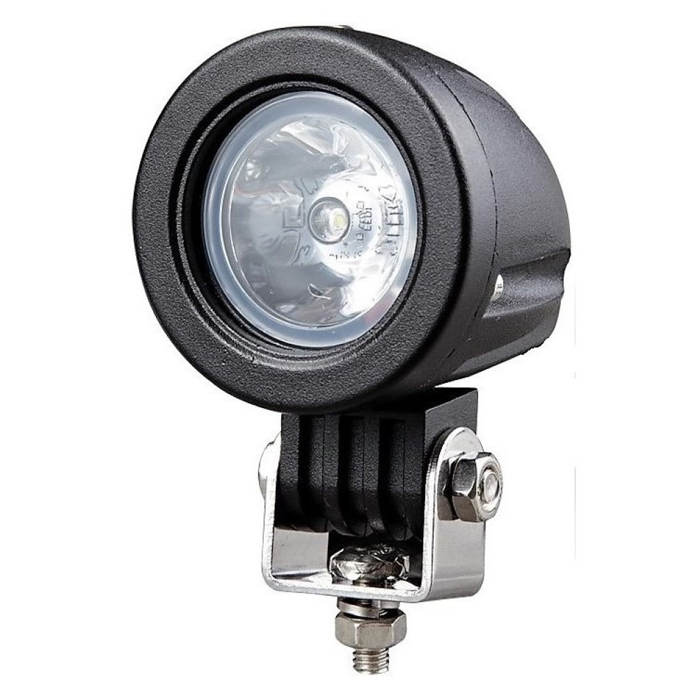 Универсальная круглая светодиодная фара рабочего света с нижним крепежом. Мощностью 10 Вт со светодиодами Cree с узким углом свечения (SPOT) в ударопрочном литом алюминиевом корпусе и с ударопрочной линзой из поликарбоната с пылевлагозащитой IP67 и работоспособностью при температуре от -40 до +50 градусов.