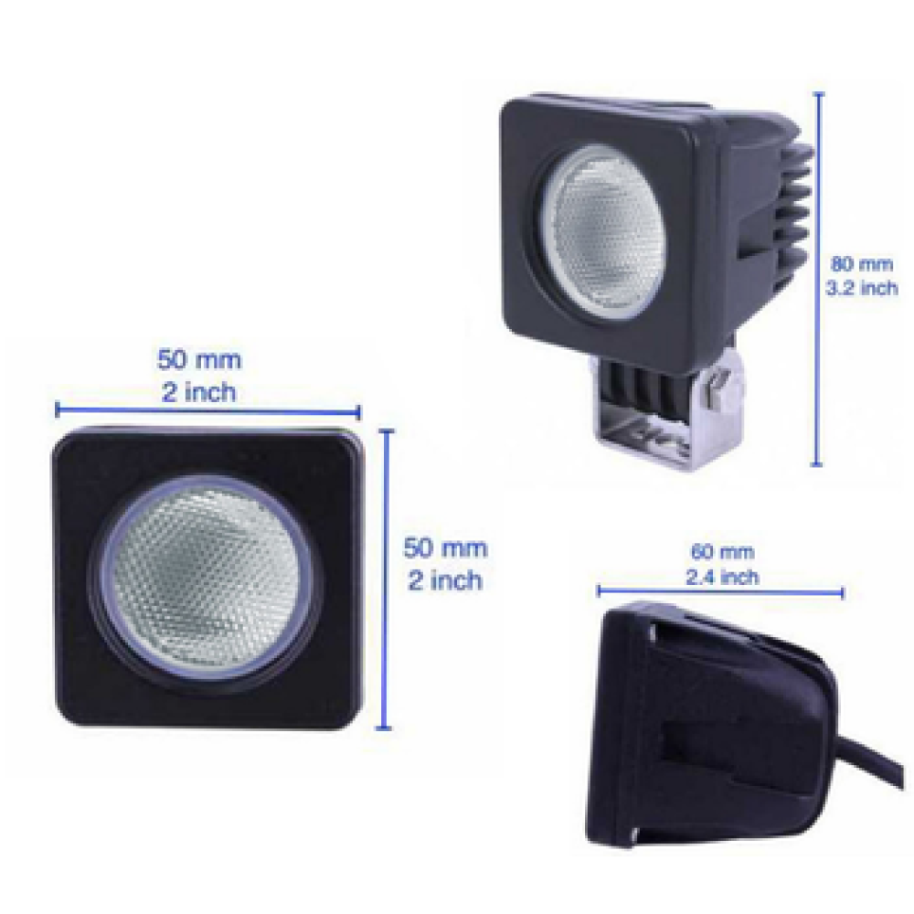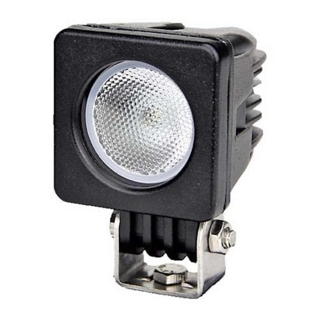 Универсальная квадратная, светодиодные фары рабочего света с нижним крепежом. Мощностью 10 Вт со светодиодами Cree с широким углом свечения (FLOOD) в ударопрочном литом алюминиевом корпусе и с ударопрочной линзой из поликарбоната с пылевлагозащитой IP67 и работоспособностью при температуре от -40 до +50 градусов.