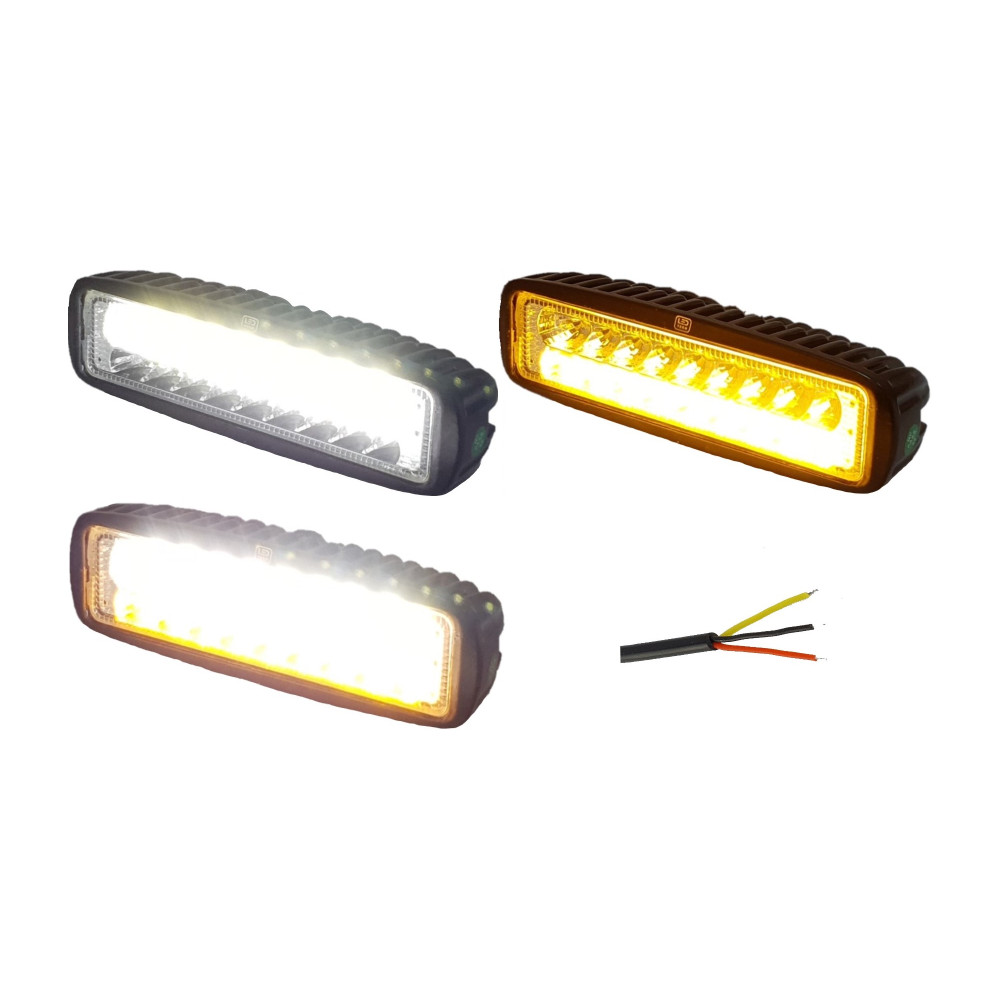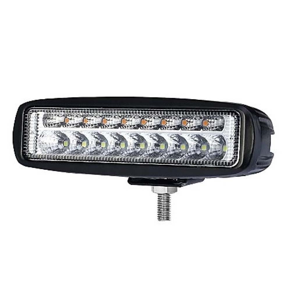 Универсальная двух-режимная светодиодная фара рабочего света c функцией поворотников, с нижним крепежом. Данную фару возможно использовать в качестве ДХО или дополнительного света с функцией поворотников, мощностью 18 Вт с широким углом свечения (FLOOD) в ударопрочном литом алюминиевом корпусе и с ударопрочной линзой из ПММА с пылевлагозащитой IP67 и работоспособностью при температуре от -40 до +50 градусов.
