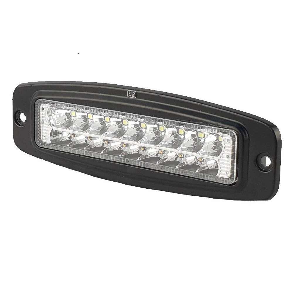 Универсальная врезная светодиодная фара рабочего света c функцией поворотников ,с боковым крепежом в виде ушек .Поворотники могут включены в качестве рабочего света .Мощностью 18 Вт с широким углом свечения (FLOOD) в ударопрочном литом алюминиевом корпусе и с ударопрочной линзой из ПММА с пылевлагозащитой IP67 и работоспособностью при температуре от -40 до +70 градусов.