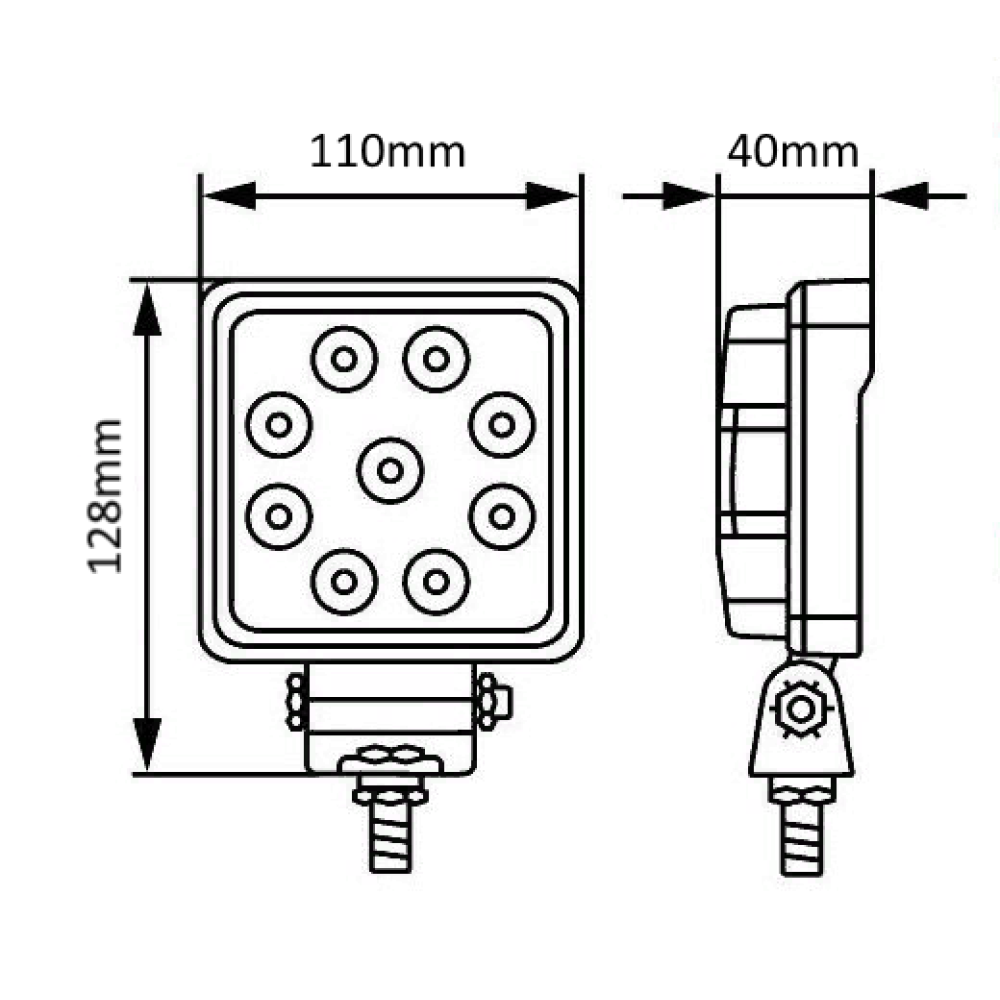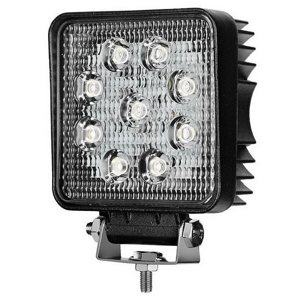 Универсальная квадратная светодиодная фара рабочего света с нижнем крепежом. Мощностью 27 Вт со светодиодами Epistar с широким углом свечения (FLOOD) в ударопрочном литом алюминиевом корпусе и с ударопрочной линзой из поликарбоната с пылевлагозащитой IP67 и работоспособностью при температуре от -40 до +50 градусов.