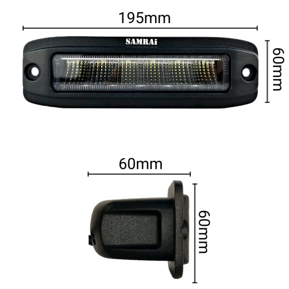 | ПроизводительSamrai | Форма фарыПрямоугольная врезная | Форма лучаWide flood (широкая полоса) |