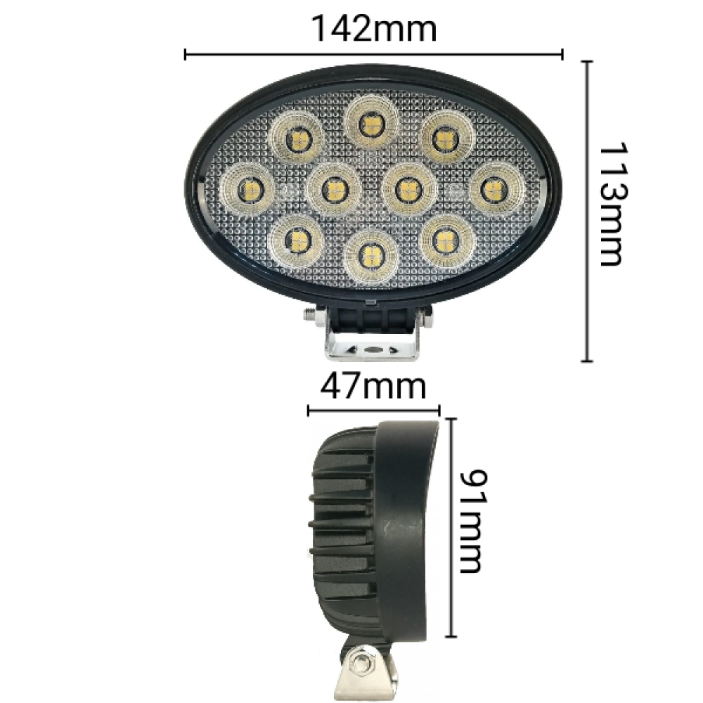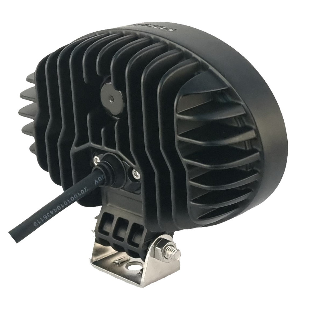 Профессиональная фара рабочего света 40 Вт овальная на современных диодах OSRAM с температурой света 5000К (тёплый свет) и повышенной светоотдачей в прочном алюминиевом корпусе на кронштейне из прочной высококачественной стали толщиной 2,5мм. В корпусе встроен воздушный клапан, обеспечивающий рециркуляцию воздуха в фаре и предотвращающий её запотевание. Данная фара имеет пыле-влагозащиту IP67 и способна работать при напряжении питания 10 ~ 36V в широком температурном диапазоне (-45C ~ +60C).