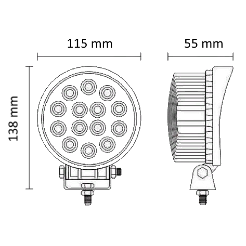 Универсальная круглая светодиодная фара рабочего света с нижнем крепежом, мощностью 42 Вт на ярких светодиодах Epistar последнего поколения с широким углом свечения (FLOOD) в ударопрочном литом алюминиевом корпусе и с ударопрочной линзой из поликарбоната с пылевлагозащитой IP67 и работоспособностью при температуре от -40 до +50 градусов.