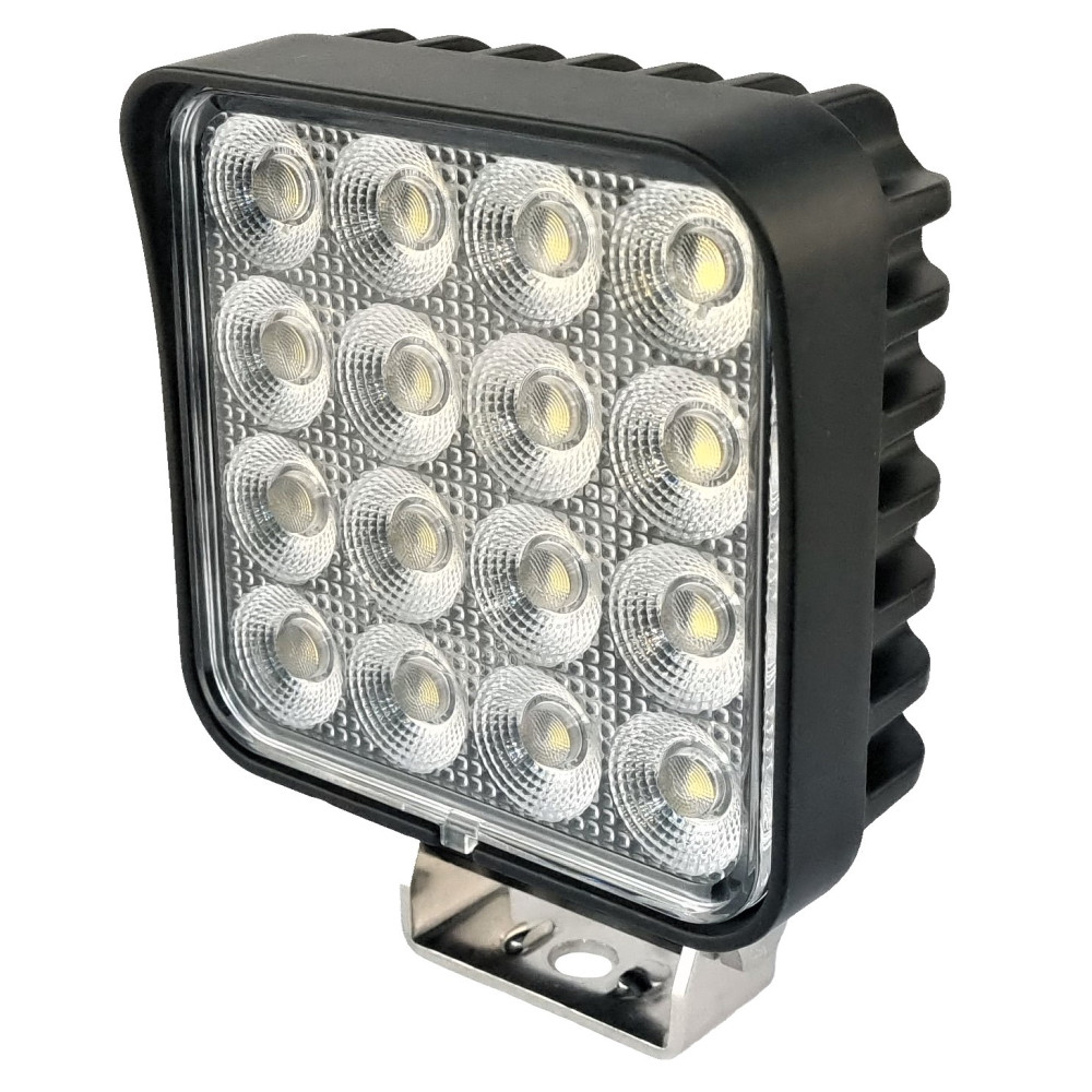 Профессиональная фара рабочего света 64 Вт квадратная на современных диодах OSRAM с температурой света 5000К (тёплый свет) и повышенной светоотдачей в прочном алюминиевом корпусе на кронштейне из прочной высококачественной стали толщиной 2,5мм. В корпусе встроен воздушный клапан, обеспечивающий рециркуляцию воздуха в фаре и предотвращающий её запотевание. Данная фара имеет пыле-влагозащиту IP68 и способна работать при напряжении питания 10 ~ 36V в широком температурном диапазоне (-45C ~ +60C).