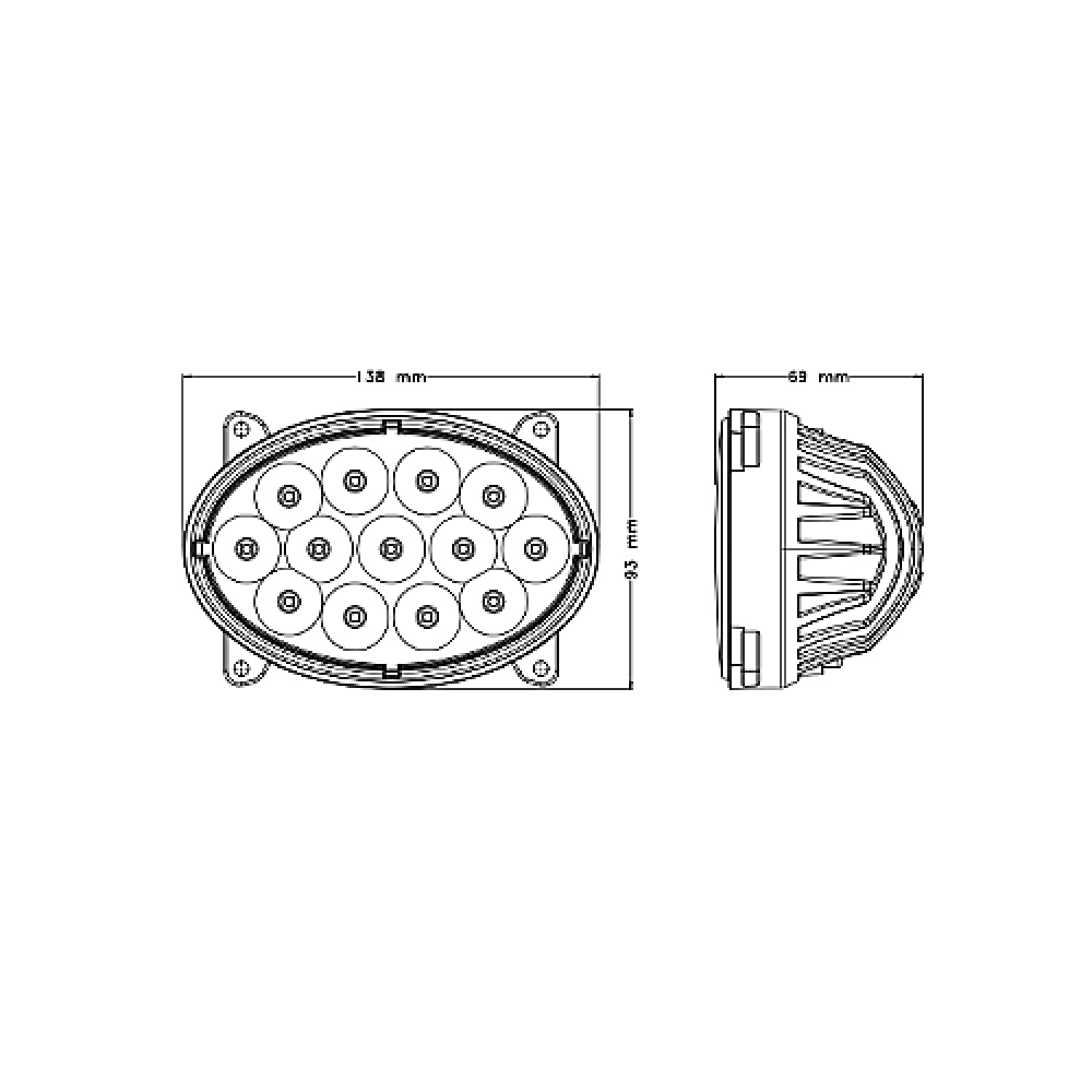 | Форма фарыОвальная | Форма лучаFlood (широкое пятно) | Ширина луча (°)60 |