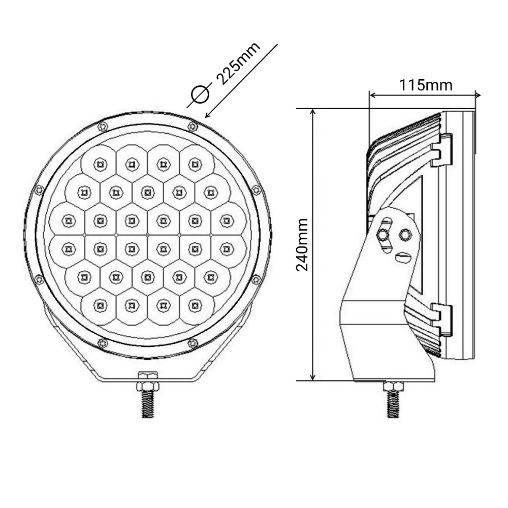 Профессиональная фара дальнего света 150 Вт на эффективных диодах CREE 5Вт в прочном корпусе из высококачественного литого алюминия на кронштейне из прочной высококачественной стали толщиной 3мм, c пыле-влагозащитой IP68.