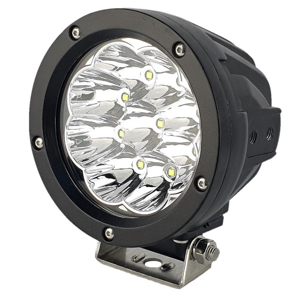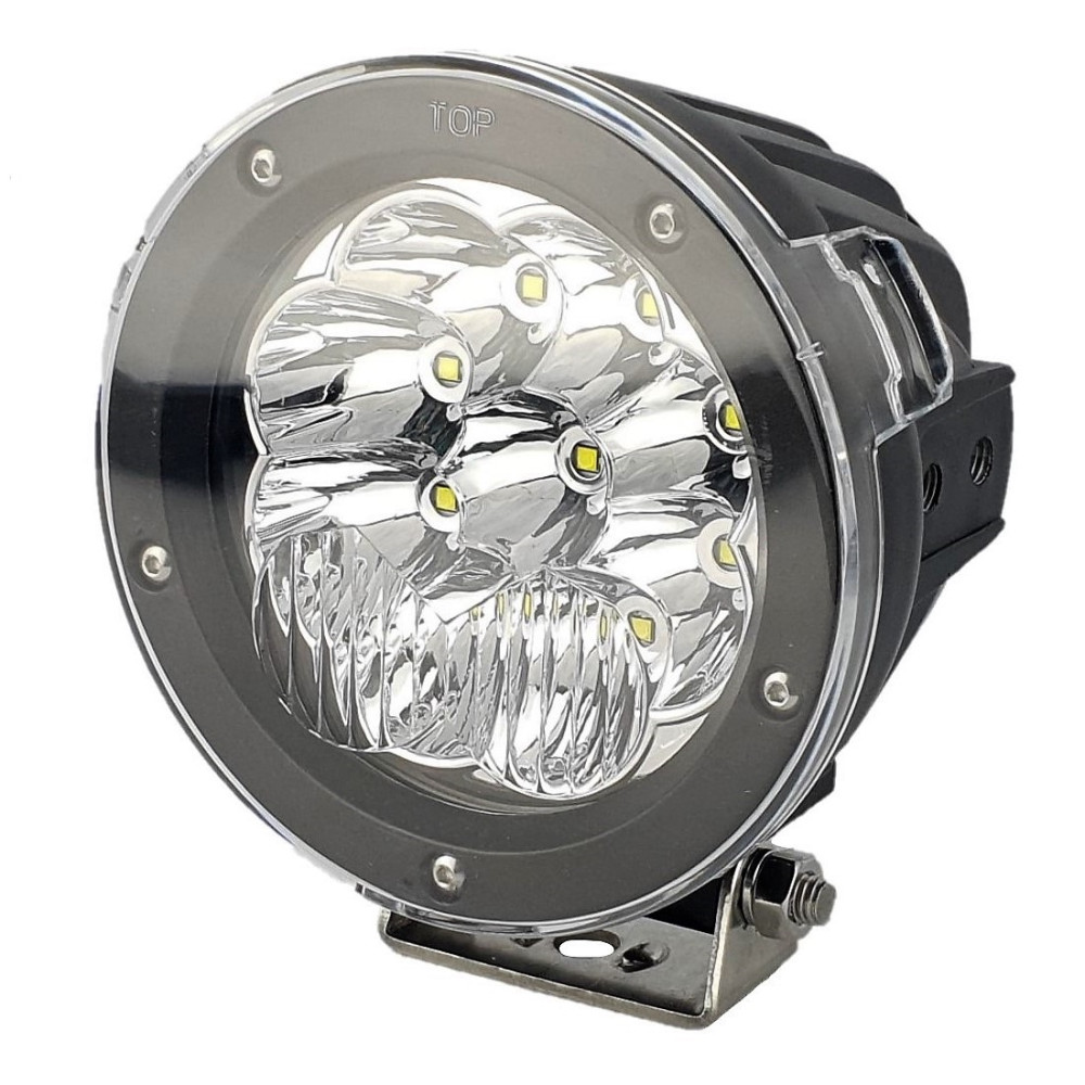 Профессиональная фара дальнего света 45 Вт на эффективных диодах CREE 5Вт в прочном корпусе из высококачественного литого алюминия на кронштейне из прочной высококачественной стали толщиной 3мм, c пыле-влагозащитой IP68. Данная фара способна работать при напряжении питания 12В/24В в широком температурном диапазоне (-45C ~ +80C), устойчива к сильным вибрациям и нагрузкам в течении длительного времени бесперебойной работы. В комплекте с фарой идёт защитная крышка, которая ещё и формирует комбинированный луч, за счет чего, к мощному дальнему свету добавляется широкий луч засвечивающий обочины.