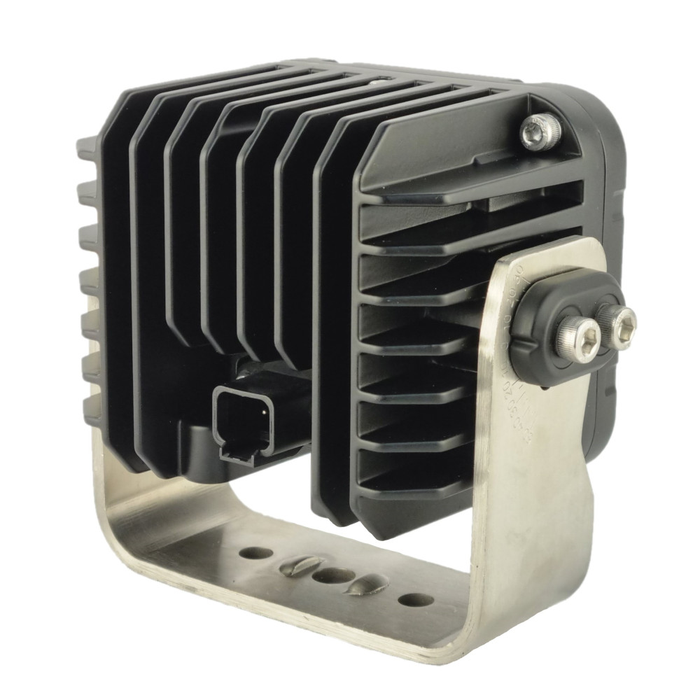 Данная фара укомплектована влагозащищённым разъемом Deutsch 2 Pin, а сам корпус имеет пыле-влагозащиту IP68. Массивные ребра радиатора позволяют эффективно рассеивать тепло для бесперебойной работы в течение длительного времени в широком температурном диапазоне (-45C ~ +60C). Прочная скоба крепления крепится к мощному корпусу фары через демпферные резиновые подушки, благодаря чему, фара легко выдерживает сильные вибрации и нагрузки и идеально подходит для различной спец. техники, работающей в самых суровых условиях. Данная фара может использоваться на грузовиках, внедорожниках, вездеходах, катерах, а также, на строительной, погрузочной, дорожной, карьерной, горнодобывающей, лесозаготовительной, сельскохозяйственной технике, таких марок как CASE, CATERPILLAR, HITACHI, HYUNDAI, JCB, JOHN DEERE, KOMATSU, LIEBHERR, VOLVO и другие.