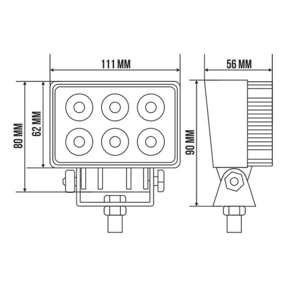 Технические характеристики Светодиодная фара рабочего света 18 Вт прямоугольная (Flood)
