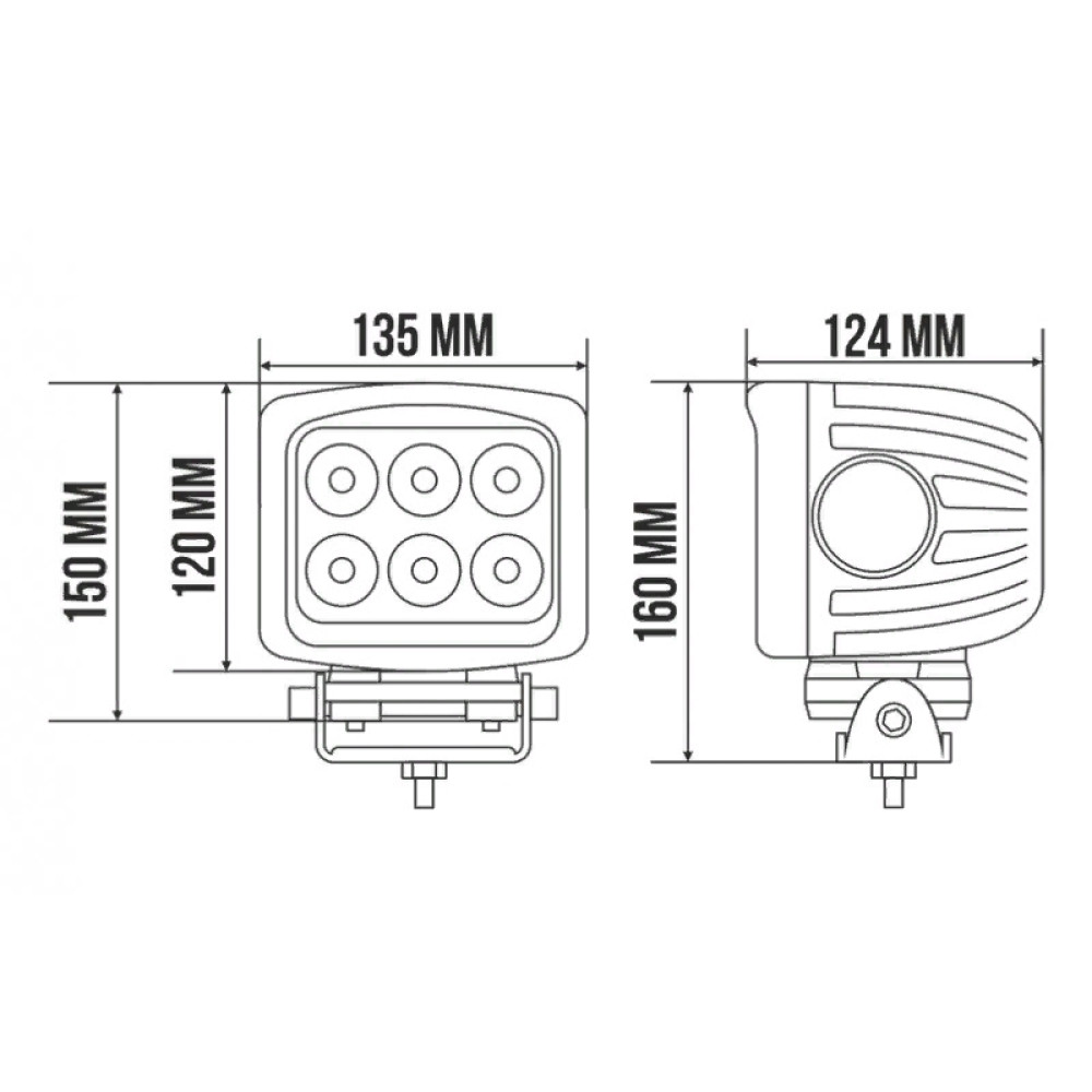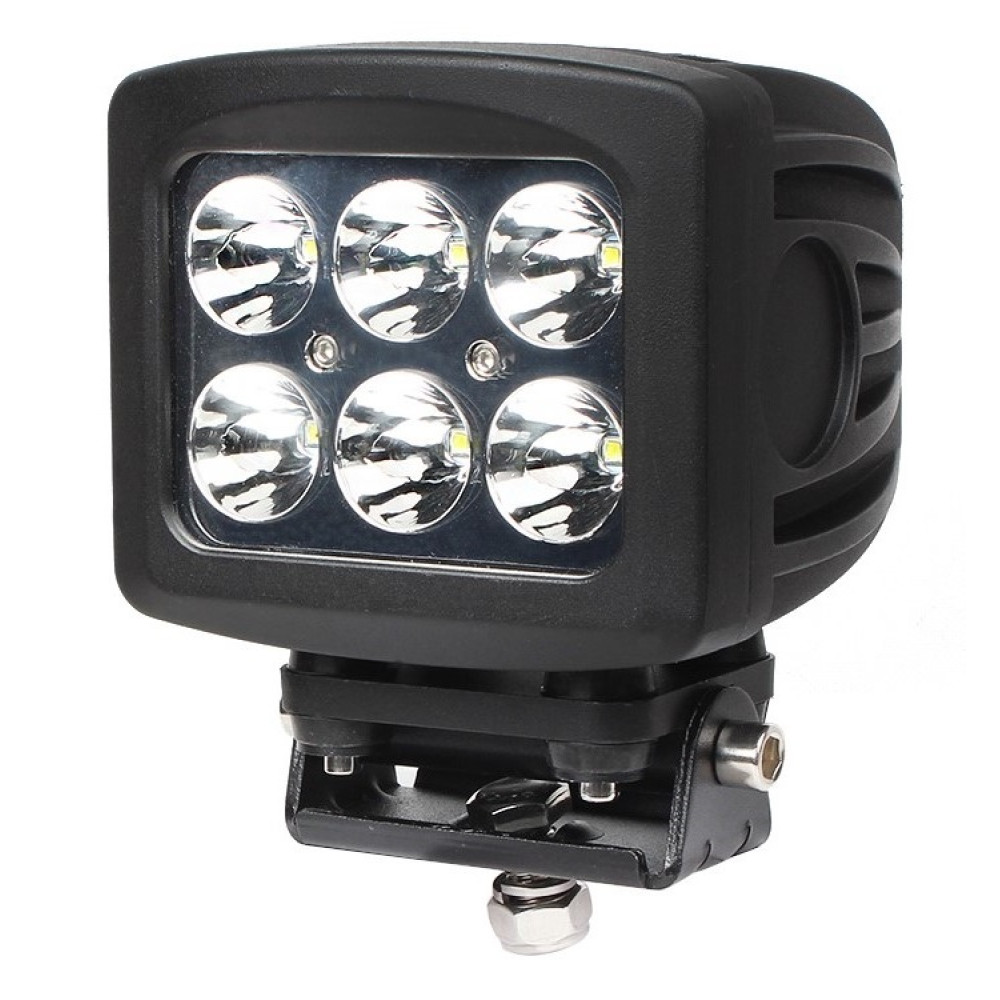 Яркая универсальная светодиодная фара рабочего света мощностью 60 Вт со светодиодами Cree с широким углом (Flood) свечения в ударопрочном литом алюминиевом корпусе и с ударопрочной линзой из закаленного стекла с пылевлагозащитой IP67 и работоспособностью при температуре от -40 до +50 градусов.