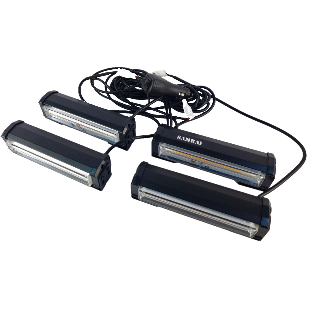 Проблесковые фары-вспышки оранжевые светодиодные многорежимные в прочном компактном корпусе из алюминия. Имеют пыле-влагозащиту IP67 и способны работать при напряжении питания 12/24V в широком температурном диапазоне (-45C ~ +50C). Крепление проблесковых фар на крышу транспортного средства осуществляется с помощью кронштейнов, входящих в комплект. К бортовой сети транспортного средства комплект подключается штекером через разъём прикуривателя. Яркие диоды делают оранжевые спецсигналы заметными даже в солнечную погоду.