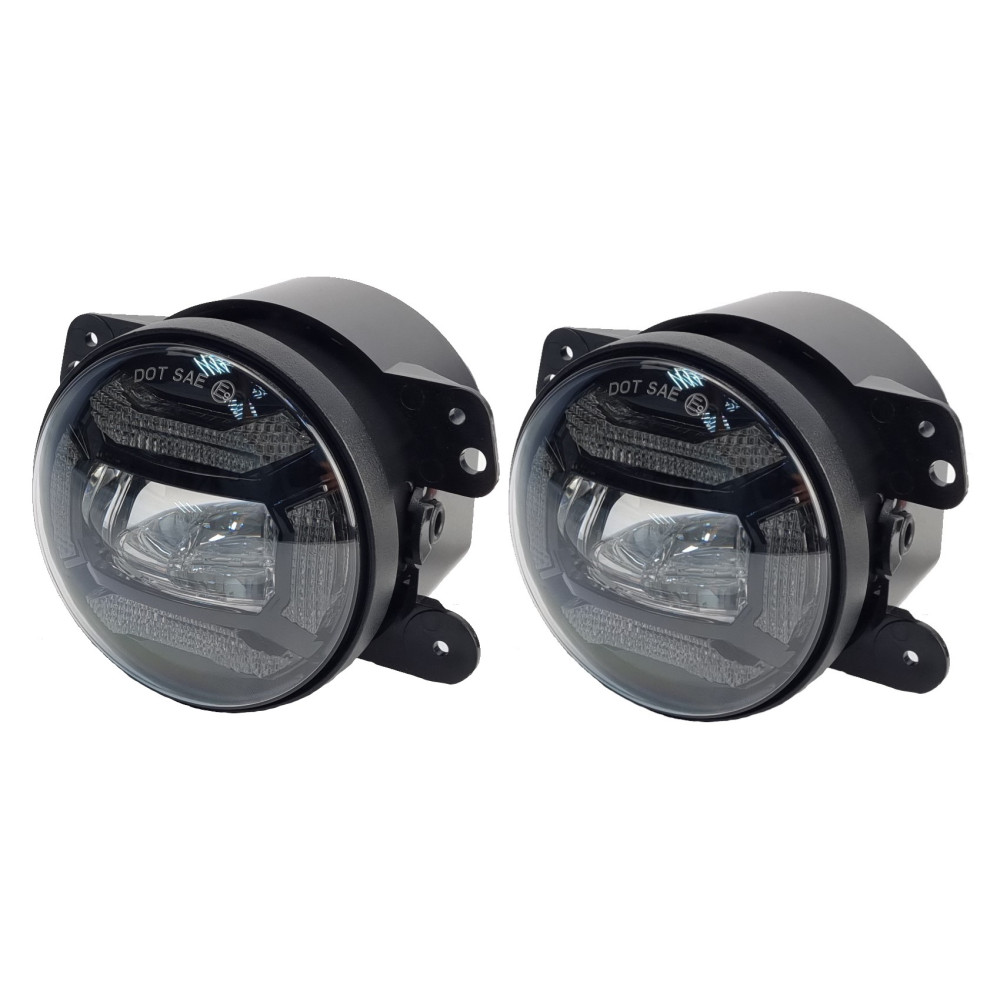 Светодиодные противотуманные фары универсальные на современных и эффективных диодах OSRAM 30 Вт с функцией дневных ходовых огней в корпусе с регулировкой фар по высоте луча. Фары имеют пыле-влагозащиту IP67 и способны работать при напряжении питания 12/24V в широком температурном диапазоне (-45C ~ +50C).